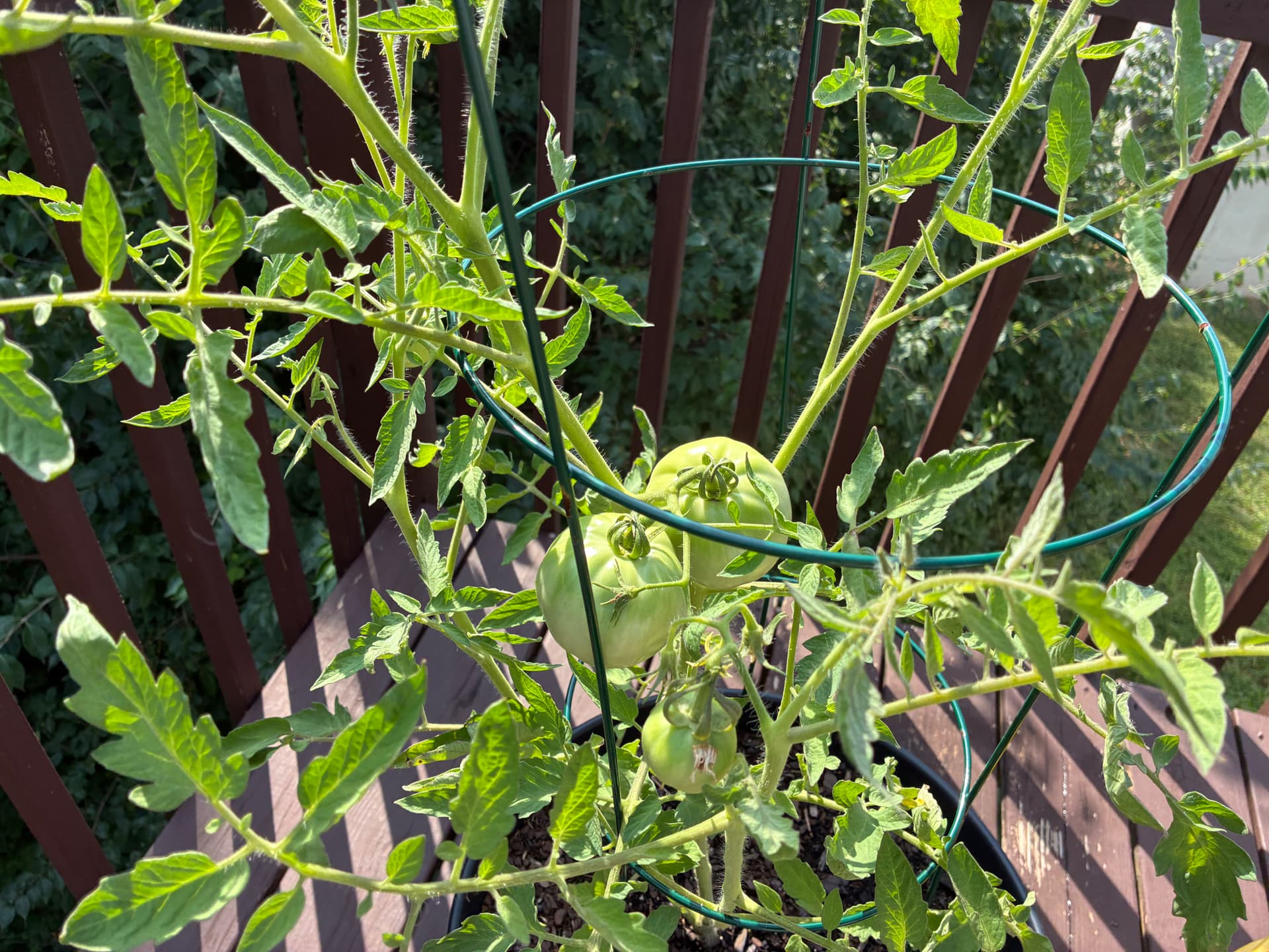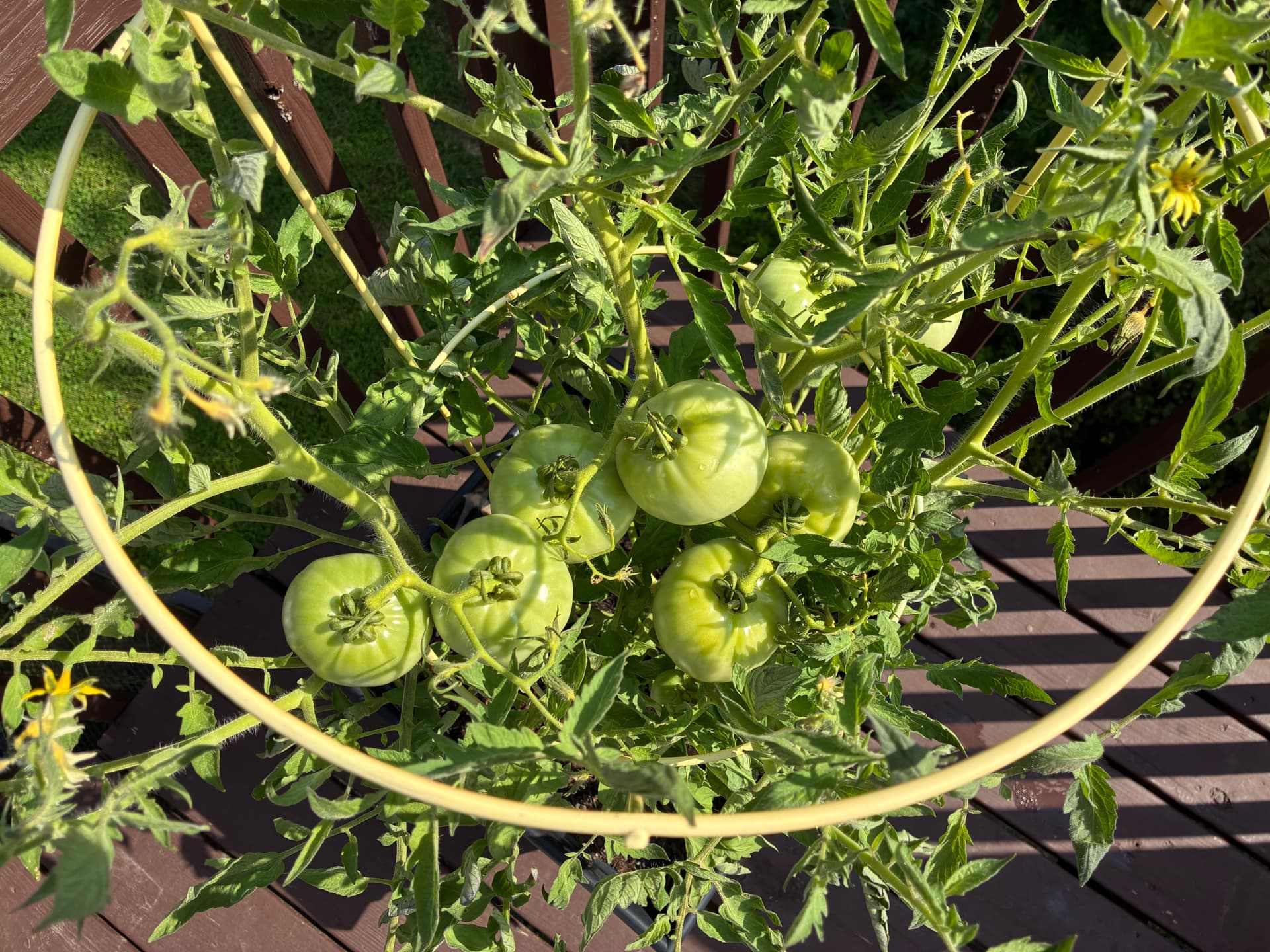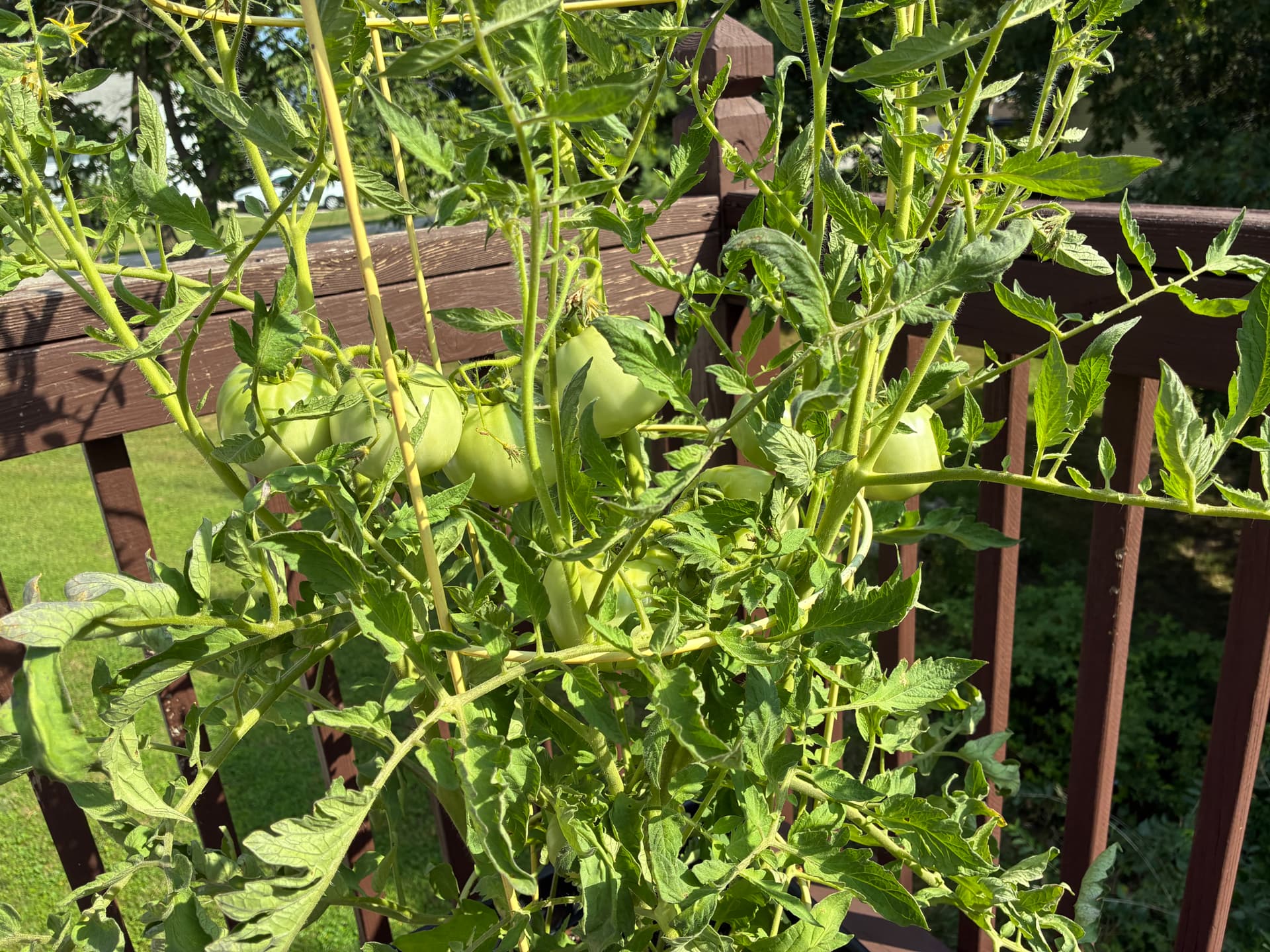 Still green. My mom said to wait till they start to show a color change to red then pluck and set in window